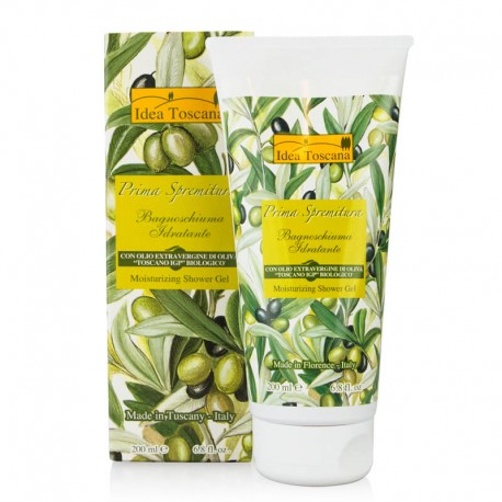 Naturalny żel do mycia ciała wzbogacony organiczną oliwą z toskańskich oliwek Extra Virgin, testowany dermatologicznie.